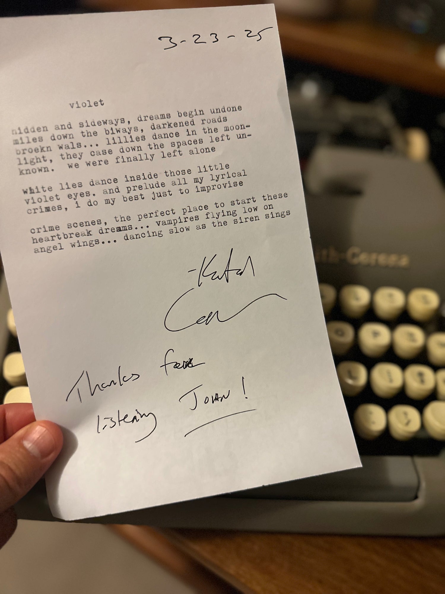 Lyrics fresh off the press from my 1964 Smith-Corona, written and signed...